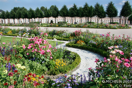 Lluis XIV considerava que els jardins eren tan importants com el palau en si i va voler que fossin creats d'acord.  En 1661, va encarregar a l'arquitecte André Le Nôtre que creés una nova meravella. Assistit per C Olbert, Le Brun i Mansart, Le Nôtre va crear uns jardins d'estil francès de noranta hectàrees, en un parc de vuit-centes.    El jardí compta amb 2.000 estanys i fonts, 350.000 arbres, i cada any es planten 300.000 flors. És un veritable museu a l'aire lliure on podem descobrir riques estàtues de marbre blanc, grups escultòrics i gerros.